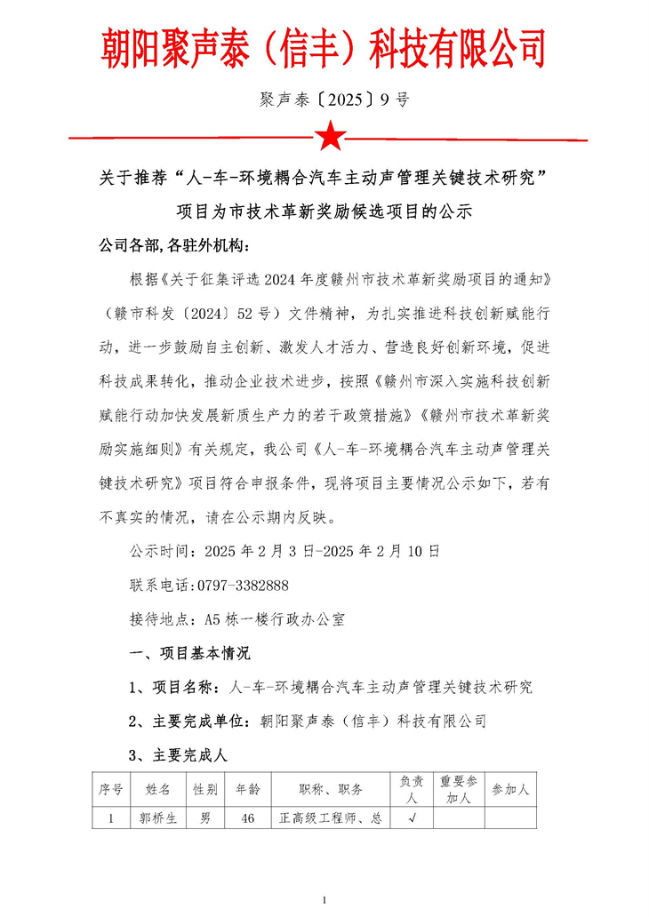 人-車-環境耦合汽車主動聲管理關鍵技術研究的公示